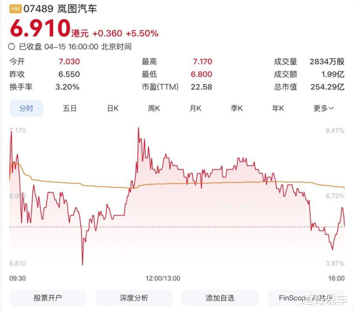 此次“H股全流通”,令该公司自由流通股成倍增长,流通性显著提升。值得关注的是,4月15日,岚图汽车股价上涨,截至收盘,报收6.910港元/股,增长5.50%。虽相比当初的发行价仍有所不足,但一个值得注意的点是,近半个月岚图股价震荡式上涨。